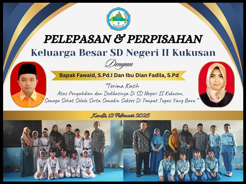 Bapak Fawaid, yang juga tidak kalah berdedikasinya, akan berpindah ke SD Negeri I Kukusan. Kepergiannya meninggalkan kesan mendalam bagi semua yang mengenalnya. Sebagai guru yang penuh semangat dan memiliki komitmen tinggi terhadap pendidikan, Bapak Fawaid telah menjadi teladan bagi banyak orang, khususnya dalam hal profesionalisme dan keteladanan dalam mengajar.